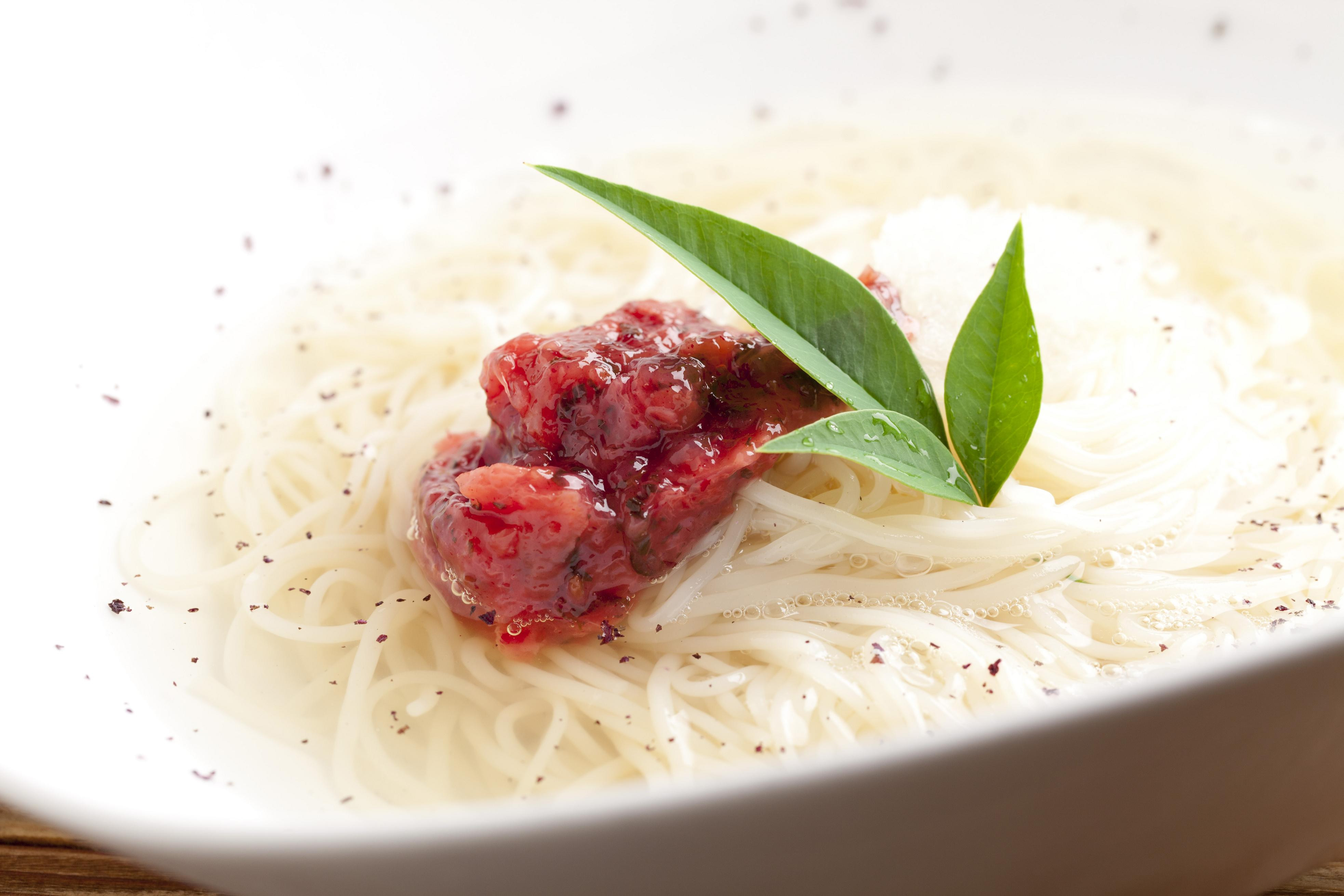 そえられたタタキ梅と大根おろしがシメの一品にぴったり